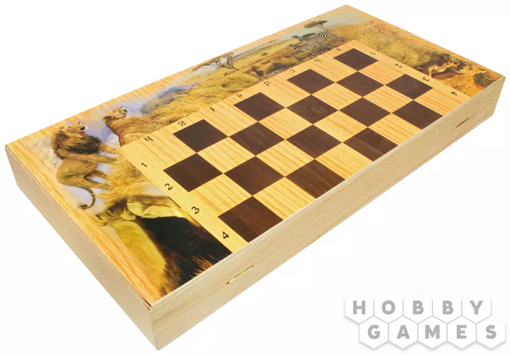 В наборе вы найдёте тридцать деревянных фишек (по пятнадцать для каждого игрока) и два кубика – этот набор понадобится для игры в нарды. По двенадцать чёрных и белых деревянных фишек используется для игры в шашки. А комплект из тридцати двух пластиковых игровых фигур (шестнадцать чёрных и шестнадцать белых) вы сможете применить для игры в шахматы.