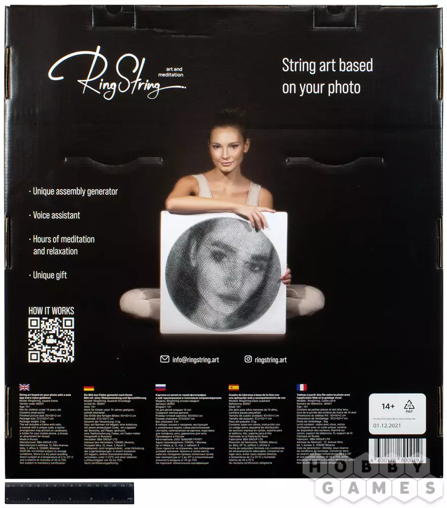 Создайте своими руками уникальное украшение для вашего дома или подарок своему близкому человеку – портрет нитями, а набор для творчества String art вам в этом поможет. В комплекте вы найдёте всё необходимое для создания необычного портрета. Загрузите желаемую фотографию на сайт производителя, указанный в инструкции, и получите инструкцию для творения. А специальное мобильное приложение с голосовым помощником позволит не отвлекаться постоянно на схему, а полностью посвятить себя процессу. Набор для творчества String art – это релаксация от процесса, качественные материалы и удивительный результат в одной коробке!