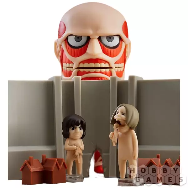 В наборе есть сменные детали лица для колоссального титана: лицо с большими глазами в стиле чиби и более реалистичное лицо, которое вы могли видеть в аниме. Помимо этого в наборе идут два небезызвестных титана размером поменьше. Чтобы передать напряжённую атмосферу нападения, в наборе добавлены маленькие фигурки людей и даже надломленная стена тоже здесь.