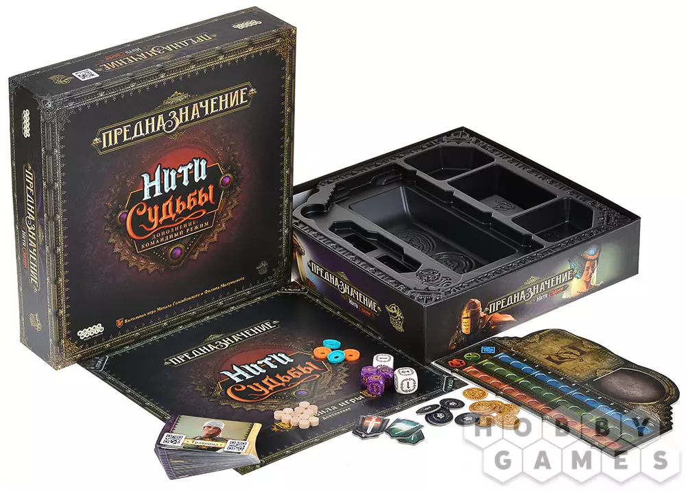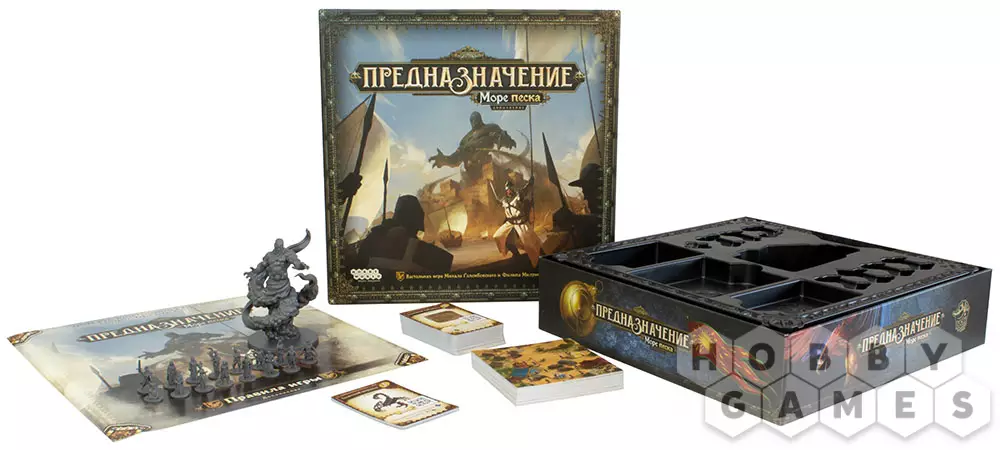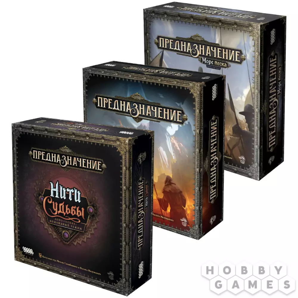 Набор включает в себя игру "Предназначение" и два дополнения "Море песка" и "Нити судьбы" со скидкой 15%.