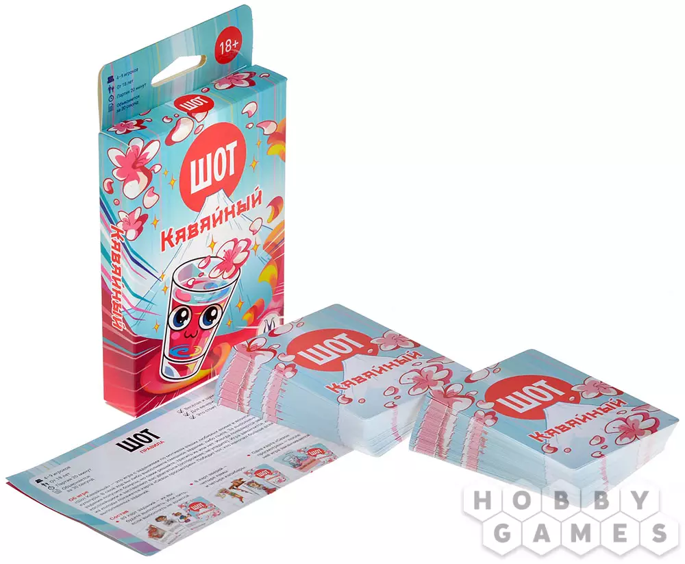 Организуйте аниме-вечеринку и доставайте "Шот кавайный"/ Игра проста, весела и идеально подойдёт для компании раскрепощённых парней и девушек! Игроки по очереди вытягивают карточки со смешными заданиями, связанными с аниме-персонажами. Вы можете выполнять забавные действия, либо выпить и передать карту следующему игроку. Он тоже должен будет решить, выполнить задание или передать карту дальше. Карта будет передаваться по кругу, пока кто-то не выполнит задание или пока она не вернётся к вам. За выполнение заданий вы будете получать бонусы, но вы сами решаете, потратить их или нет. Будьте осторожны: иногда в игру вмешиваются звери-косплееры, заставляя вас двигаться.