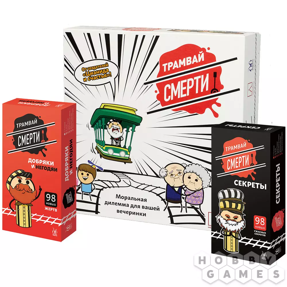 Набор "Рельсы судьбы" включает в себя игры: "Трамвай смерти", "Трамвай смерти: Добряки и негодяи" и "Трамвай смерти: Секреты" со скидкой 15%.