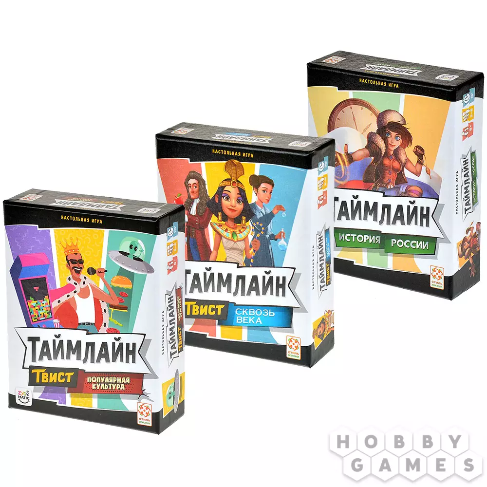 Когда история оживает, а даты превращаются в увлекательное приключение, начинается путешествие сквозь века с "Таймлайн"! В этом наборе вас ждут три захватывающих игры: "Таймлайн: История России", "Таймлайн Твист: Сквозь века" и "Таймлайн Твист: Популярная культура" – со скидкой 15%. Готовы ли вы проверить свою эрудицию и почувствовать себя настоящим знатоком истории?