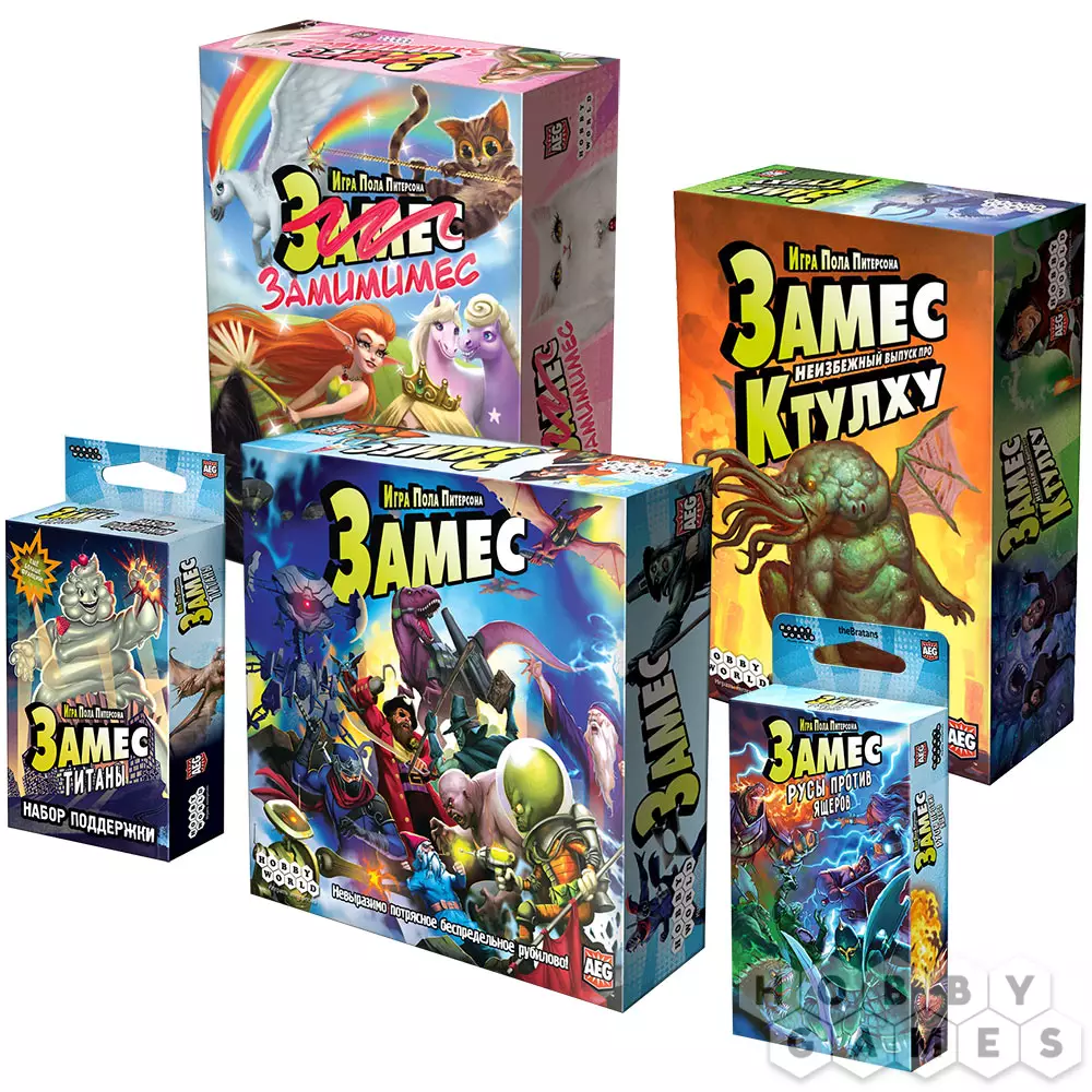 Внезапно заскучали? Настало время устроить огромный ЗАМЕС! С этим вам поможет данный набор – внутри вы найдёте пять игр из одноимённой серии, из них три базовые коробки "Замес", "Замес: Мимими" и "Замес: Неизбежный выпуск про Ктулху", а также 2 дополнения, которые совместимы с каждой из баз, – "Замес: Русы против ящеров" и "Замес: Титаны. Набор поддержки", и всё это со скидкой 15%! Вперёд, навстречу веселью!