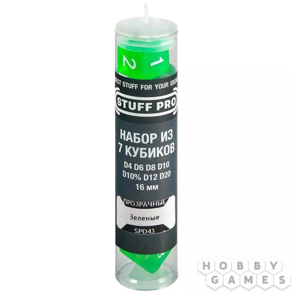 Набор из 7 кубиков для ролевых игр, 16 мм, зелёные прозрачные