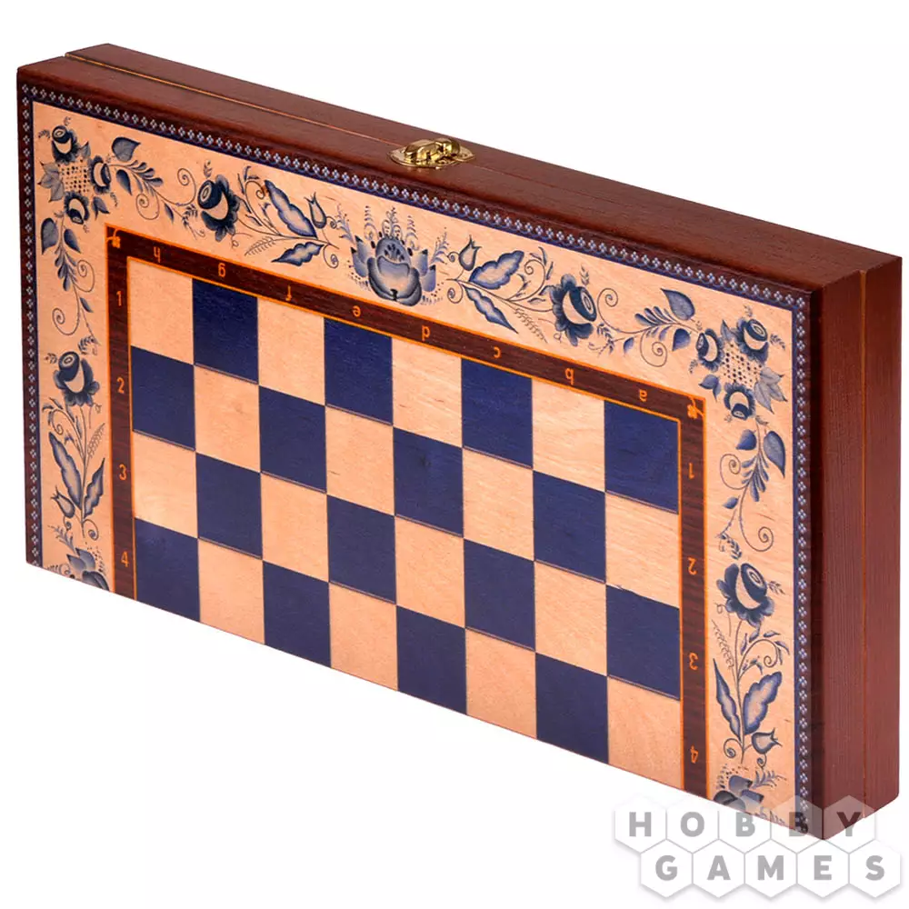 Набор классических игр "Гжель": Шахматы, шашки и нарды (400x200x55)