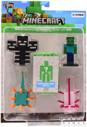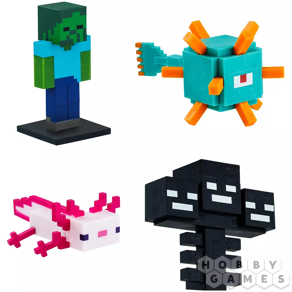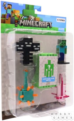 Набор коллекционных фигурок-топперов Minecraft: Иссушитель, страж, зомби, асколотль (5 шт.)