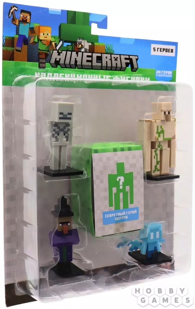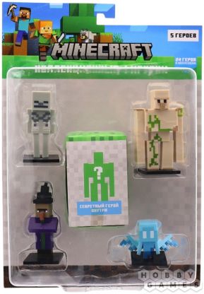 Набор коллекционных фигурок-топперов Minecraft: Тихоня, железный голем, скелет, ведьма (5 шт.)