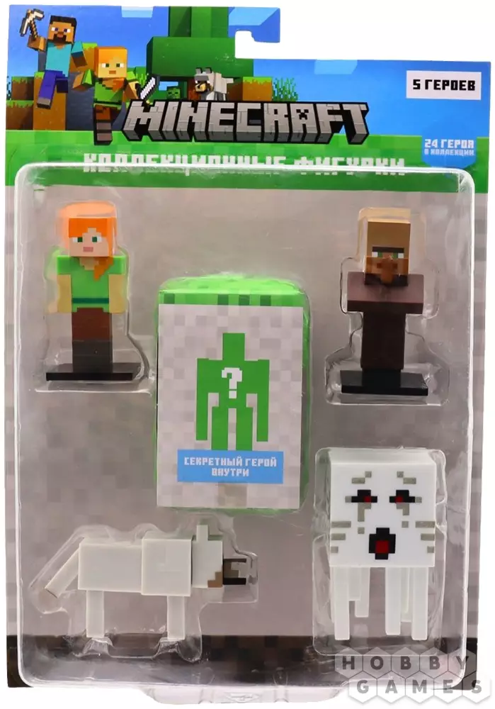 Набор коллекционных фигурок-топперов Minecraft: Волк, сельский житель, гаст, Алекс (5 шт.)