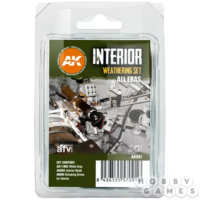 Данный набор упрощает проработку интерьеров бронетехники, которая часто вызывает сложности даже у опытных моделистов. В комплект входят три продукта, закрывающие основные задачи при работе с внутренними поверхностями. Основу набора составляет акриловая краска, воспроизводящая цвет интерьеров немецких машин времён Второй мировой войны. Этот оттенок также подходит для внутренней окраски многих других образцов бронетехники. Дополняют сет два средства для везеринга: одно предназначено для интерьерных смывок, второе – для создания потёков и следов эксплуатации на внутренних поверхностях.