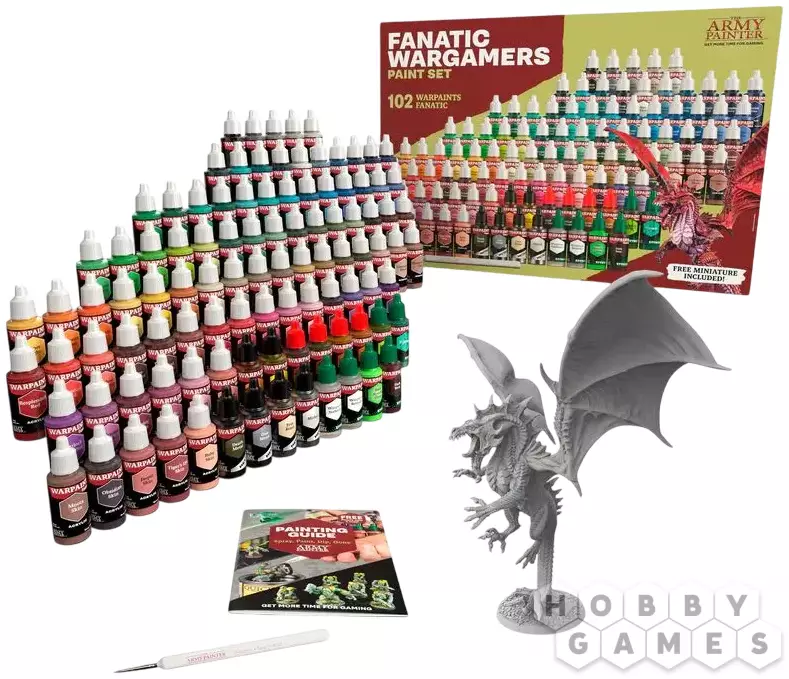 Помимо красок с различными эффектами и финишами, в этом наборе вас ждут 2 кисти, руководство по покраске, лист с наклейками и даже миниатюра дракона. Всё это – для того, чтобы вы могли сразу испытать полноценный опыт моделирования! Соберите собственную миниатюру, раскрасьте её с помощью предоставленных инструментов и используйте готовый, уникальный результат в своих настольных сражениях – или же украсьте им стол или полку!