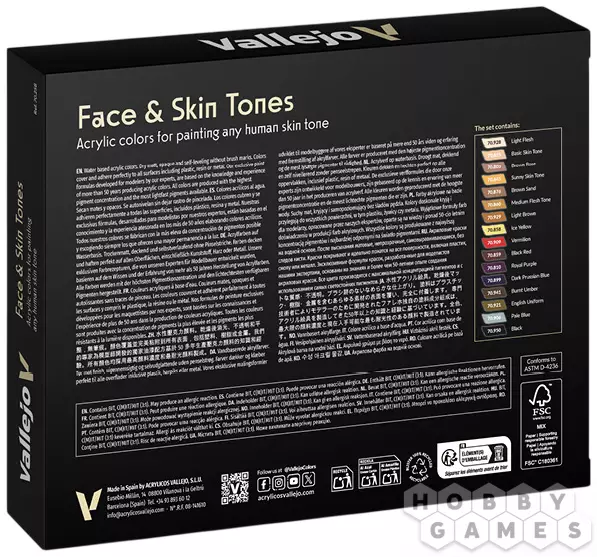 Компания Vallejo производит краски для хобби и моделизма с 90-х годов прошлого века, а ещё 30 лет до этого занималась производством красок для аниматоров мультфильмов. Благодаря такому обширному опыту в индустрии и тщательному контролю качества продукции краски компании высоко ценятся любителями моделизма во многих странах мира. Краски Vallejo производятся на основе акриловых смол и воды, подходят как для раскрашивания кистью, так и аэрографом, легко смываются с рук, быстро сохнут и не токсичны.
