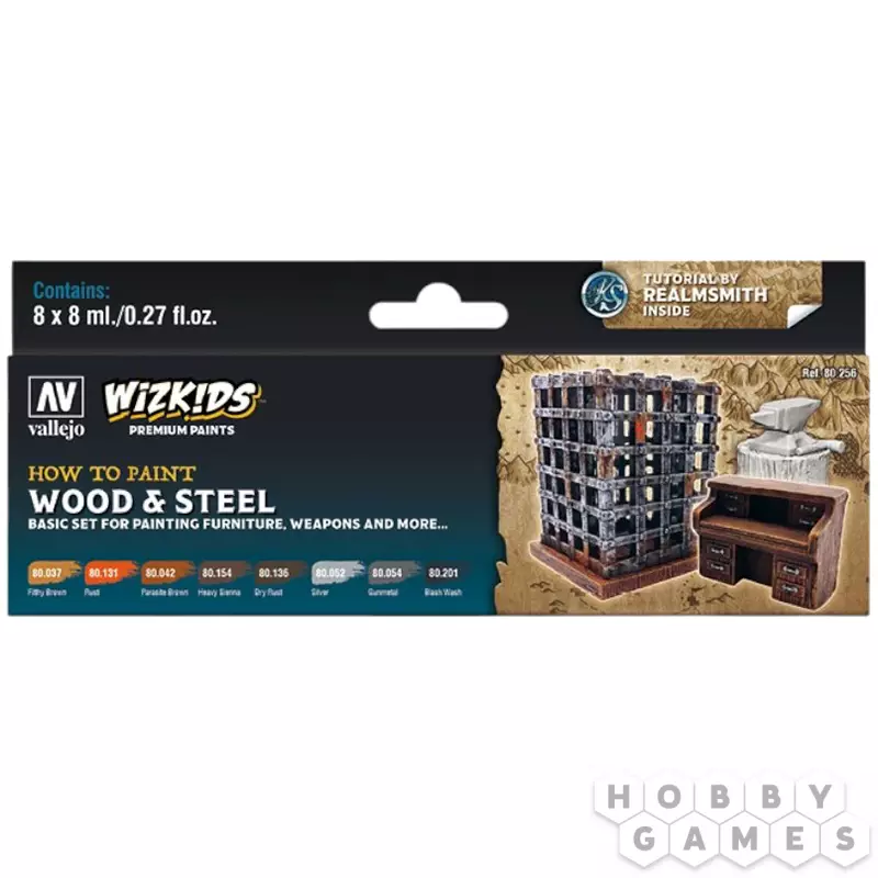 Набор красок Vallejo Wizkids Premium Paints: Wood & Steel 80.256