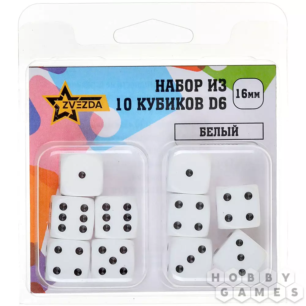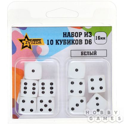 Набор кубиков D6 Zvezda, 10 шт. (16 мм, белые)