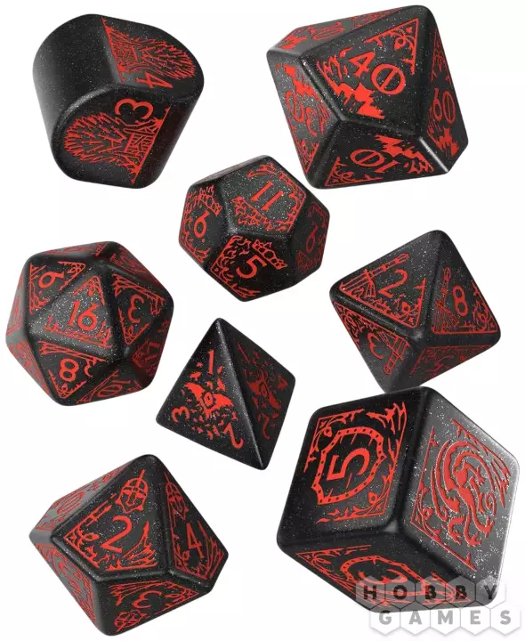 В наборе вас ждёт полный арсенал из восьми полиэдров: решающий D20, тактический D12, классический D6 и другие кости для великих свершений.