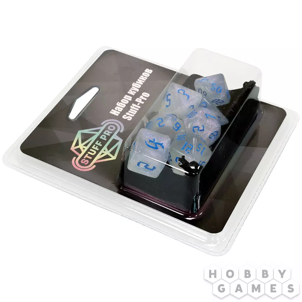 Наборы кубиков для ролевых игр решают проблему покупки необходимых дайсов. В наборе содержатся семь кубиков: D4, D6, D8, D10, D10%, D12 и D20. Поставляются кубики в комплекте с бархатным мешочком для хранения, который также удобно брать с собой на игру, ведь он легко помещается в карман.
