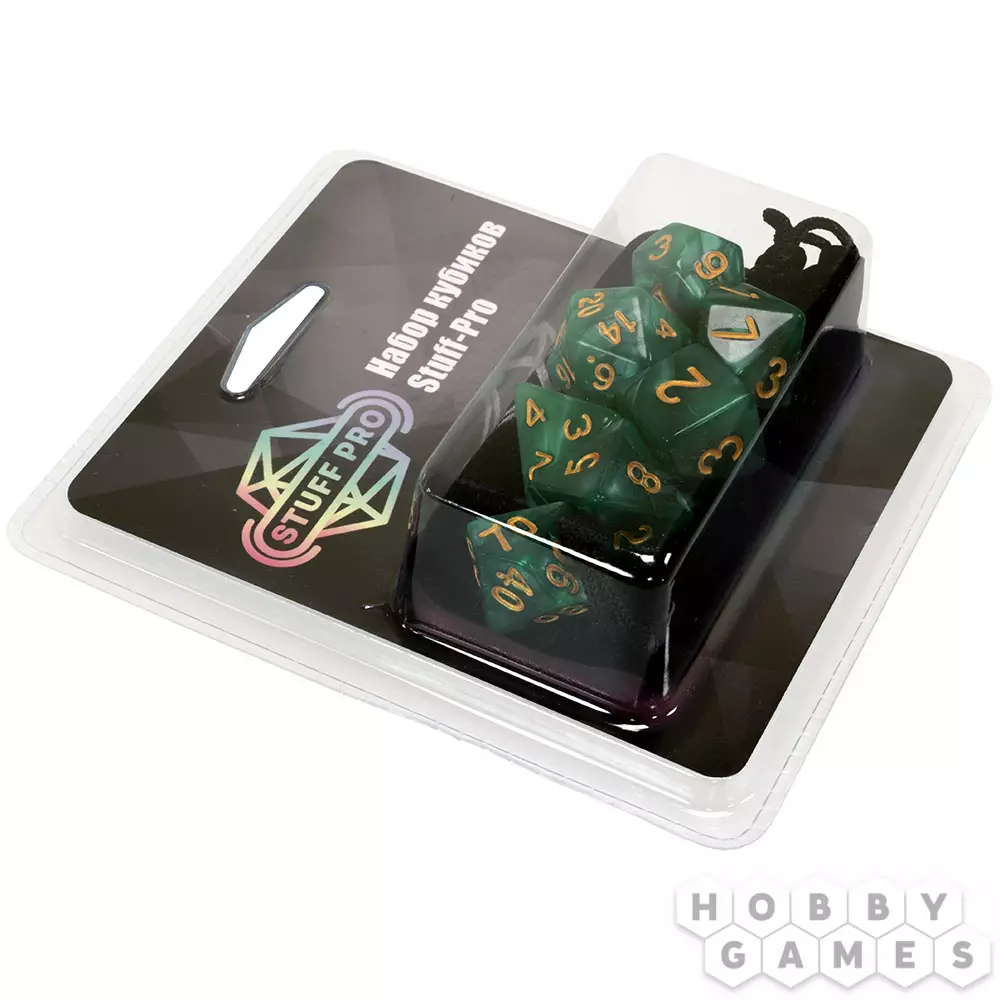 Наборы кубиков для ролевых игр решают проблему покупки необходимых дайсов. В наборе содержатся семь кубиков: D4, D6, D8, D10, D10%, D12 и D20. Поставляются кубики в комплекте с бархатным мешочком для хранения, который также удобно брать с собой на игру, ведь он легко помещается в карман.