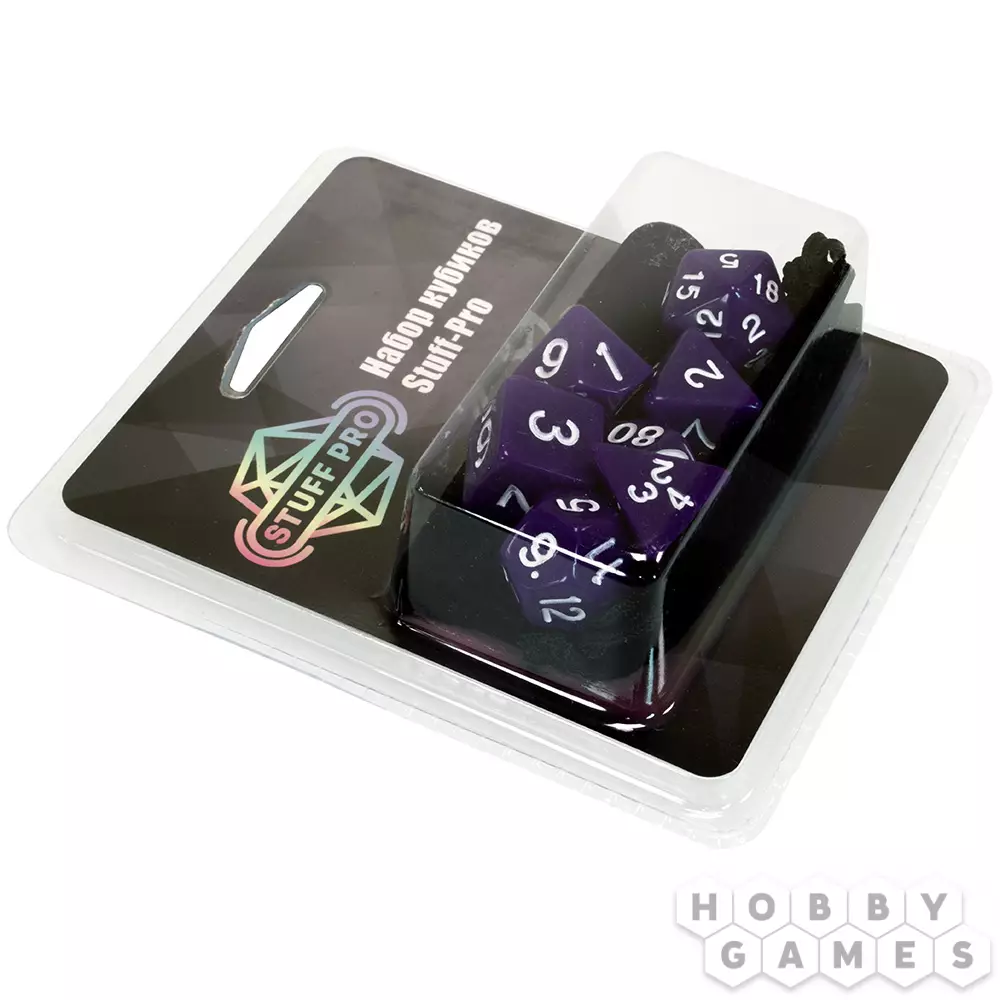 Наборы кубиков для ролевых игр решают проблему покупки необходимых дайсов. В наборе содержатся семь кубиков: D4, D6, D8, D10, D10%, D12 и D20. Поставляются кубики в комплекте с бархатным мешочком для хранения, который также удобно брать с собой на игру, ведь он легко помещается в карман.