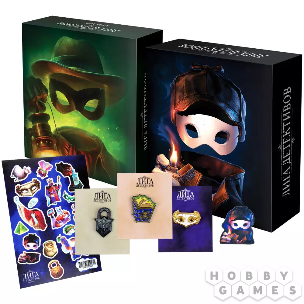 В полумраке кабинета, где окутанный пылью воздух дрожит от невысказанных подозрений, начинается главное расследование века. Бросьте вызов своей интуиции с помощью набора, в котором целых две базовых коробки – "Лига детективов" и "Лига детективов: Новые миры", – стикерпак и четыре значка, и всё это со скидкой 15%!