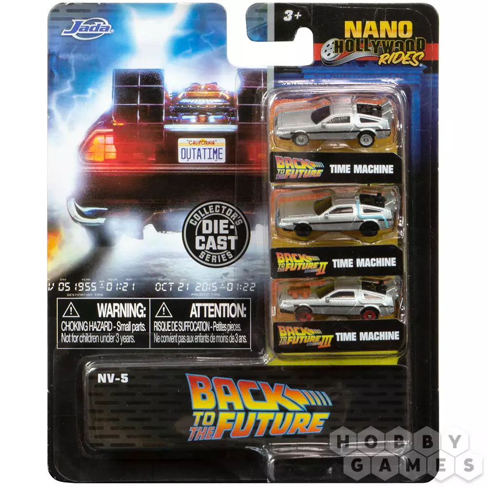 Этот набор машинок состоит из трёх моделей легендарного автомобиля DeLorean DMC-12 из кинотрилогии "Назад в будущее" масштаба 1:65. Каждая машина соответствует внешнему виду средства перемещения во времени Дока и Марти из соответствующих частей серии – обычная из первой части, с голубой подсветкой из второй и с красными дисками и внешним двигателем из третьей.