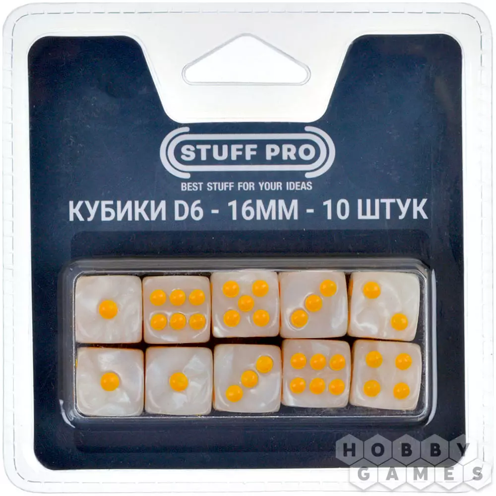 Набор нефритовых кубиков D6 Stuff Pro, 10 шт. (16 мм, белые)