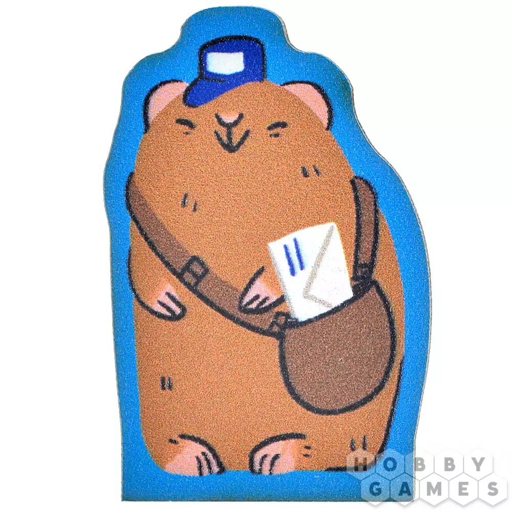 Хотите ещё больше проникнуться атмосферой настолок? В посылке затерялись стикеры с почтовой тематикой – чтобы украсить мир вокруг нотками ностальгии. А ещё – деревянные значки с трогательными котиком, собачкой и хомяком, которые станут не просто аксессуарами, а верными спутниками в любых приключениях.