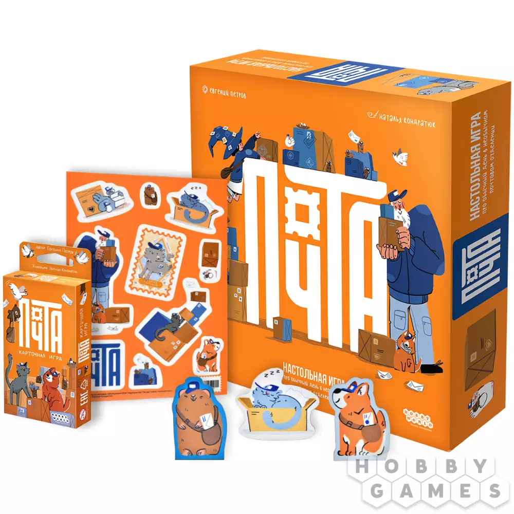 Представьте: скрип гусиного пера, шелест конвертов, топот почтовых сапог — где-то между этим рождается настоящее веселье! В этом волшебном наборе вас всё, что нужно для почтового приключения: две настольных игры "Почта" и "Почта: Карточная игра", а также стикерпак и 3 деревянных значка – и всё это со скидкой 15%! Распаковывайте, играйте и пусть каждый день будет как долгожданное письмо от старого друга – тёплым, весёлым и полным сюрпризов.