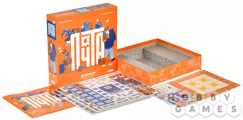 В настольной игре "Почта" игрокам предстоит группировать на стеллажах одинаковые посылки и закреплять их специальными лентами, чтобы добиваться поставленных целей и зарабатывать победные очки. Перемещайте своего помощника по полкам, а он будет подсказывать, куда разместить посылку. Но учтите, что друг на друга посылки не ставятся, поэтому поставить её можно только на свободное место. Постарайтесь объединить одинаковые посылки в группу, чтобы закрепить их специальной лентой. Так они точно доедут до получателя в целости и сохранности!