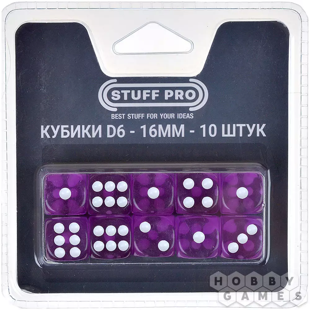 Отзывы о Набор прозрачных кубиков D6 Stuff Pro, 10 шт. (16 мм, фиолетовые)