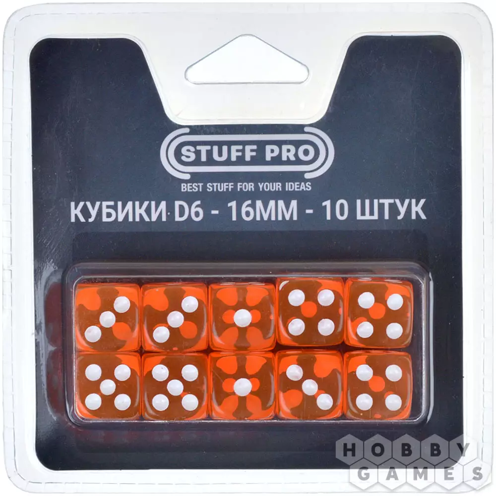 Отзывы о Набор прозрачных кубиков D6 Stuff Pro, 10 шт. (16 мм, оранжевые)
