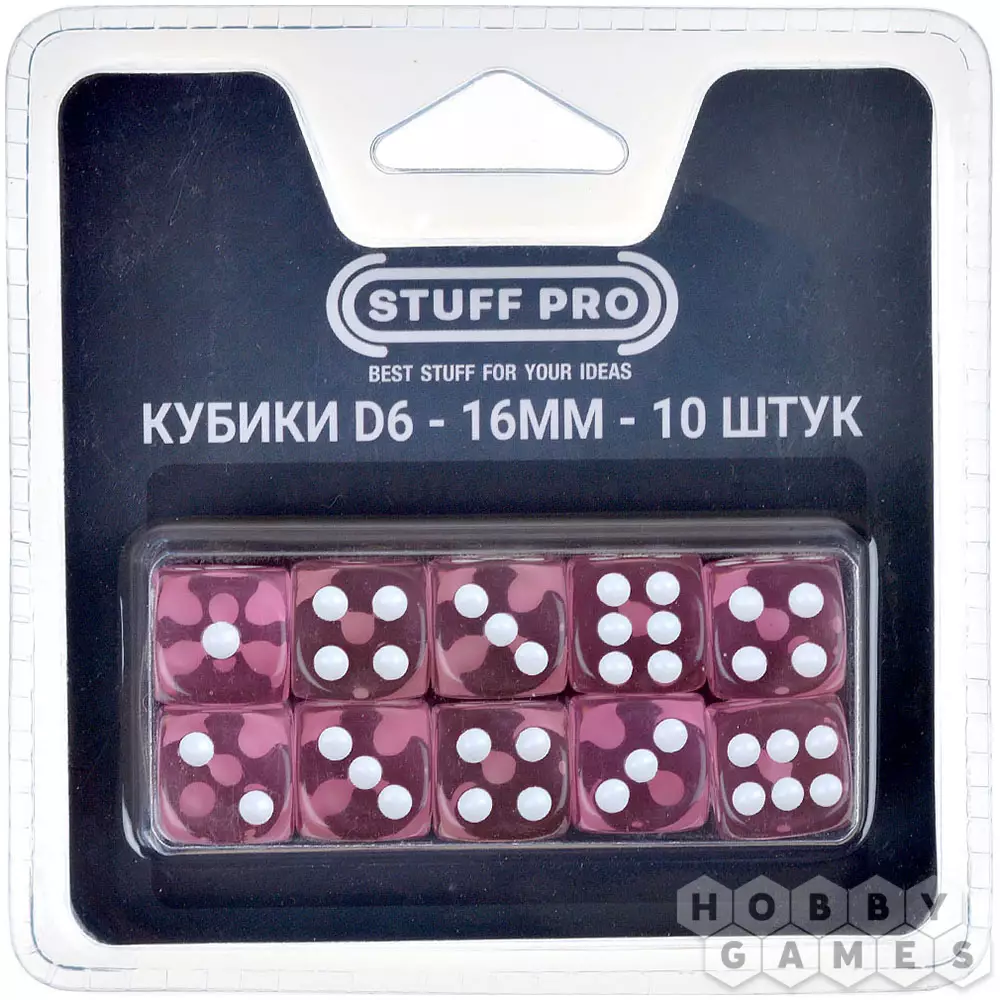 Набор прозрачных кубиков D6 Stuff Pro, 10 шт. (16 мм, розовые)