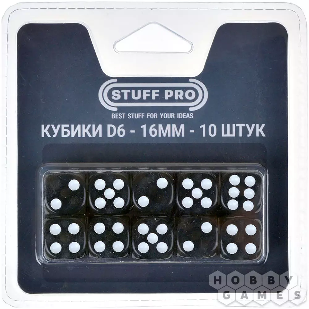 Набор прозрачных кубиков D6 Stuff Pro, 10 шт. (16 мм, серые)