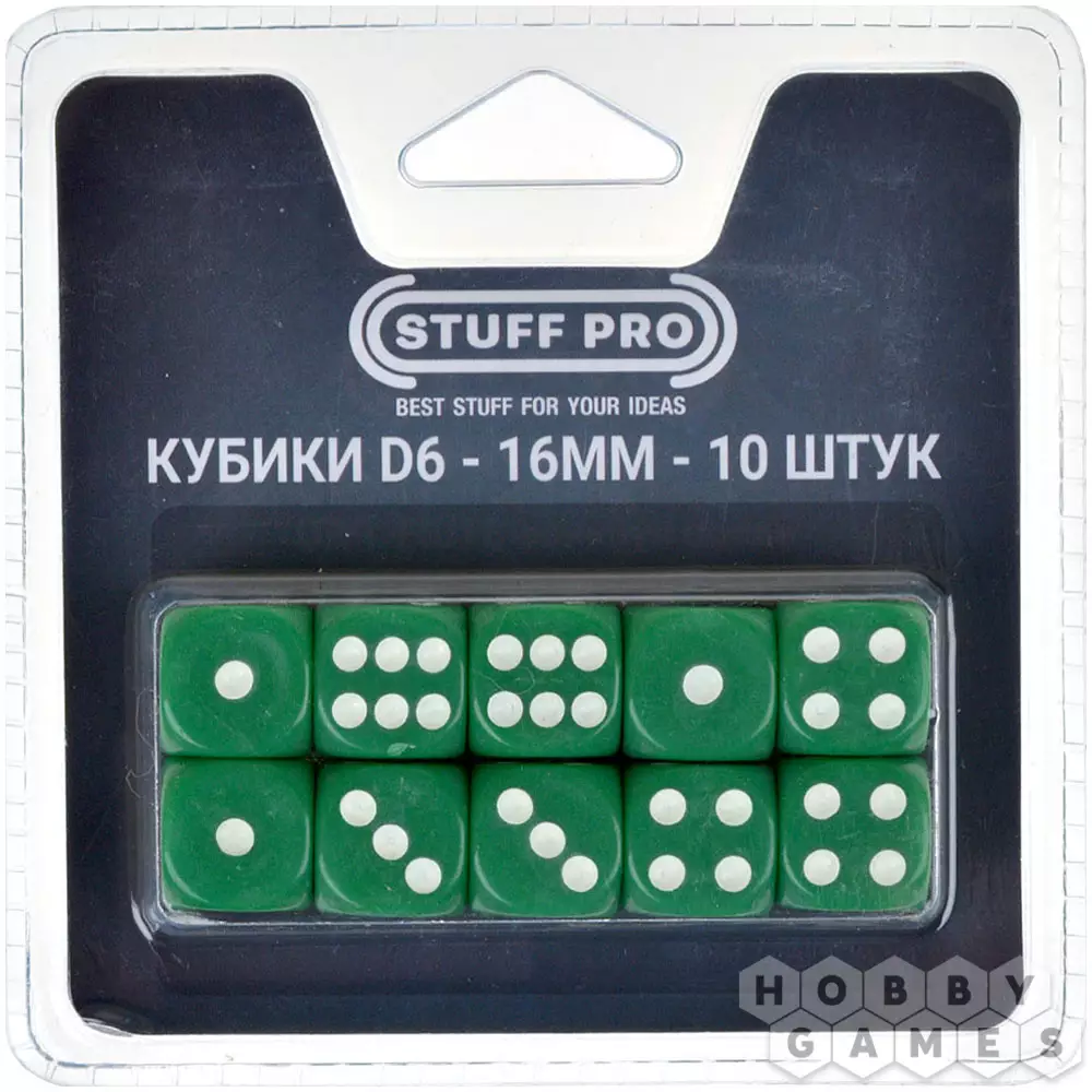 Набор стандартных кубиков D6 Stuff Pro, 10 шт. (16 мм, зелёные)
