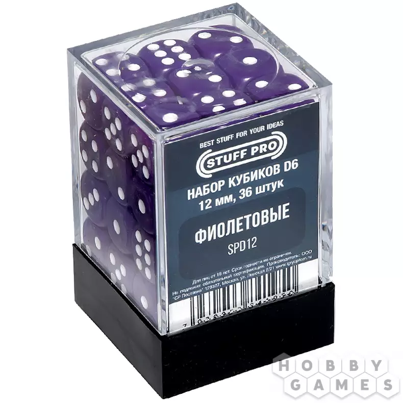 Набор стандартных кубиков D6 Stuff-Pro, 36 шт. (12 мм, фиолетовые)