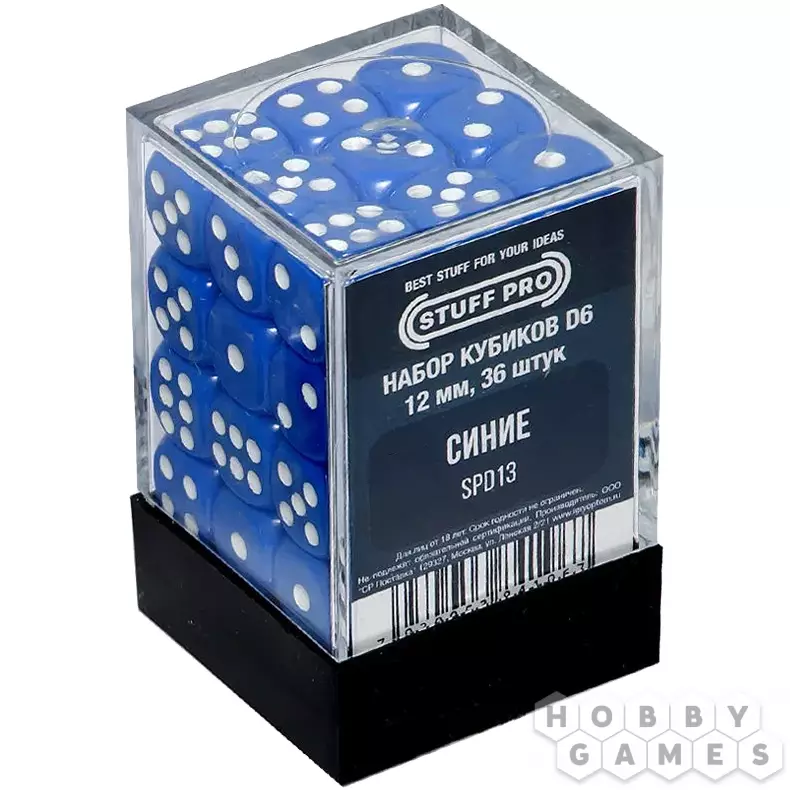 Набор стандартных кубиков D6 Stuff-Pro, 36 шт. (12 мм, синие)