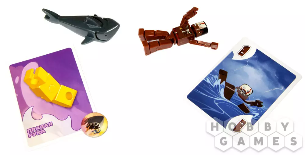 Укус – в эту фазу акула кусает ближайшего к ней робота-пирата и оттяпывает ему одну конечность. Если это была последняя конечность, то игрок выбывает из игры, если же нет, тогда игрок перемещает своего пирата в начало линии и забирает на руку все выложенные карты хода