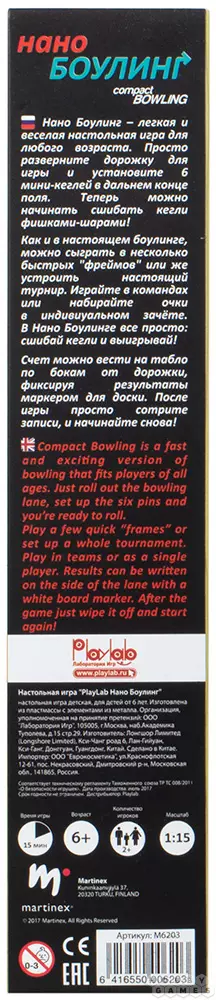 Боулинг – вид развлечения любимый многими. Но увы, не всегда есть возможность собраться с друзьями и отправиться в боулинг-клуб; то нет свободных дорожек, то нет свободного времени, то общественные места закрывают для посещения. В такой ситуации на выручку придёт настольная игра "Нано боулинг"! Правила такие же, а ехать никуда не нужно: пригласите домой друзей или устройте турнир с семьёй. Играть в "Нано боулинг" так же интересно, как и в обычный, но теперь вам не придётся ждать, когда кегли выставятся на дорожку – вы сами можете сделать это гораздо быстрее. А специальная магнитная лента не даст разлететься им во все стороны, и соберёт все сбитые кегли в одном месте.
