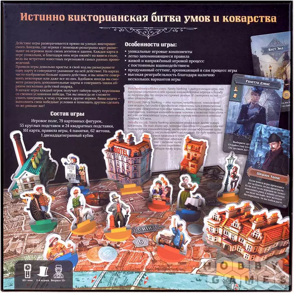 Софья25.01.2024 13:01Самое большое количество сыгранных партий на начало года!!! Игру подарила сыну на день рождения. Не вслепую, играли в нее на игротеке в Хобби геймз. Мы семейно любим игры со скрытыми ролями и целями, а также карточные игры и Nanty narking целиком соответствует нашим предпочтениям. Особенно зацепили оформление - мрачный викторианский Лондон, прекрасно нарисованные персонажи и карты действий и атмосфера игры. А также интереса добавили знакомые персонажи. Именно это стало главным критерием выбора этой игры. После сыгранных партий поняли, что она еще и очень реиграбельна за счет рандомно выпадающих персонажей и карт действий. Также есть возможность сыграть по расширенным правилам, добавить свойства агентам и зданиям, а также выбрать другой набор главных персовнажей. Игра - супер!