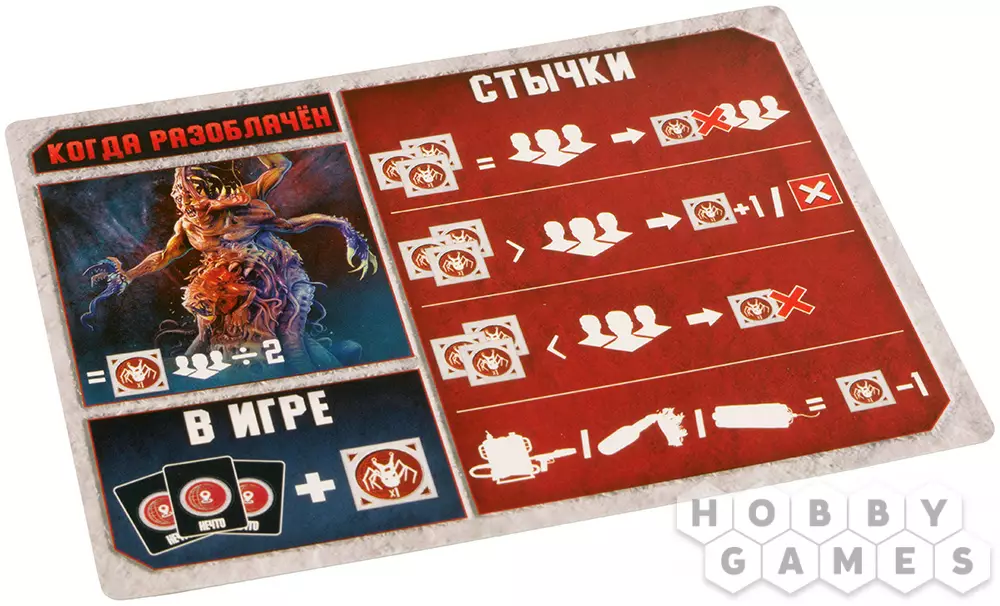 Перов26.06.2022 01:33#ДругоеПриветствую. Такой возник вопрос, вот если играет 4-8 человек, к примеру все нечто и один человек остается в живых, у этого человека есть огнестрел, вот если игроки за НЕЧТО, кидают свои жетоны по локациям, на один из них попадает выживший игрок, какая сила бы жетонов не была, этот человек избегает стычки и делает свои действия? Так ведь? получается игрок почти не убиваемый, пока не сбежит или не замерзнет? оружие он потерять не может? в правилах сказано что "оружие позволяет избежать стычки и проверку заражения и это оружие остается" я правильно понял правильно же? а так же еще вопрос по поводу проверки заражения, если у меня оружие огнестрел, мне говорят "вот я кидаю кровь, показывай роль" получается я могу на свое уже усмотрение это сделать?