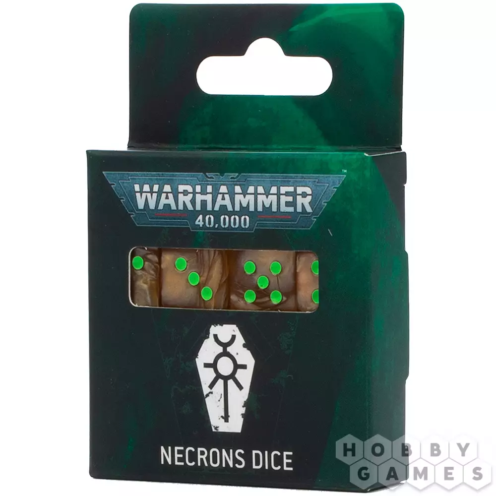 В этот набор входят 16 кубиков размером 16 мм по каждому. Они выполнены в оранжевом цвете с эффектом перламутра, а на каждой грани, где должна быть шестёрка, зелёным цветом нанесён Анх Триархии – символ Некронов.