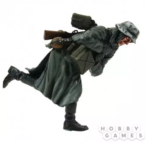 Немецкая пехота Восточного фронта, зима 1941-1942 гг., представляет собой набор фигурок, воссоздающих солдат вермахта в период решающих боёв под Москвой. Зима 1941 года стала жёстким сдерживающим фактором для немецкой армии. После попытки наступления на Москву в 1941 году, их продвижение застопорилось, и зимние условия лишь усугубили положение. Жёсткие морозы, недостаток снабжения и упорное сопротивление советских войск привели к неминуемому поражению немцев на подступах к столице. Это событие можно считать переломным моментом, изменившим последующий ход войны.
