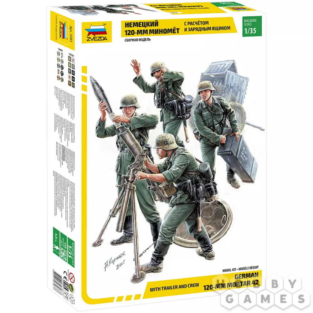 Перед вами миниатюрная копия немецкого 120-мм миномёта sGrW42 – мощного вооружения, созданного Вермахтом по мотивам советского прототипа. Это орудие, принятое на вооружение в 1943 году, было разработано после обработки данных, полученных из документов захваченного оборонного завода в Харькове.