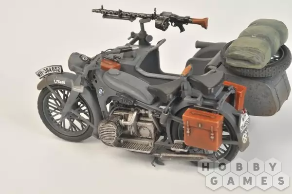 Этот набор позволит вам собрать детализированную модель немецкого мотоцикла BMW R-12. Он был одним из самых массовых в немецкой армии благодаря своей надёжности и доступной цене. Более 36 000 единиц были построены для военных и гражданских нужд. Он применялся для транспортировки оружия и боеприпасов, перевозки раненых, разведки и многих других задач. В боевых подразделениях на коляску мотоцикла устанавливался пулемёт.