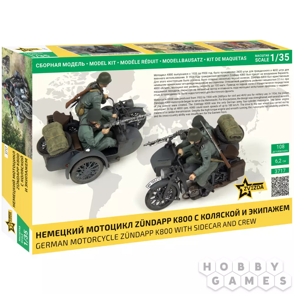 Мотоцикл Zündapp K800 выпускался в Германии с начала 1930-х годов и стал одной из моделей, использовавшихся как в гражданской, так и в военной сферах. С 1934 года модифицированная версия была принята на вооружение вермахта – её усилили для армейских нужд и дооснастили различными вариантами колясок. Особенностью K800 стал четырёхцилиндровый оппозитный двигатель мощностью 22 л.с., что делало его уникальным среди мотоциклов немецкой армии. Несмотря на удачность конструкции, мотоцикл оказался малопригодным для условий фронта, особенно в сложных ландшафтах Восточной Европы.