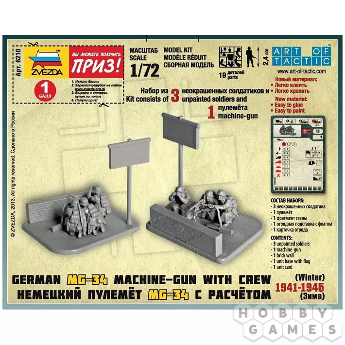 MG-34, являвшийся универсальным пулемётом, использовался как в ручном, так и в станковом варианте. Его высокая скорострельность и надёжность сделали его основным оружием поддержки немецкой пехоты. В новом мини-наборе дополнительно добавлен антураж – кирпичная стена, которая делает сцену более реалистичной и добавляет глубины игровому процессу.