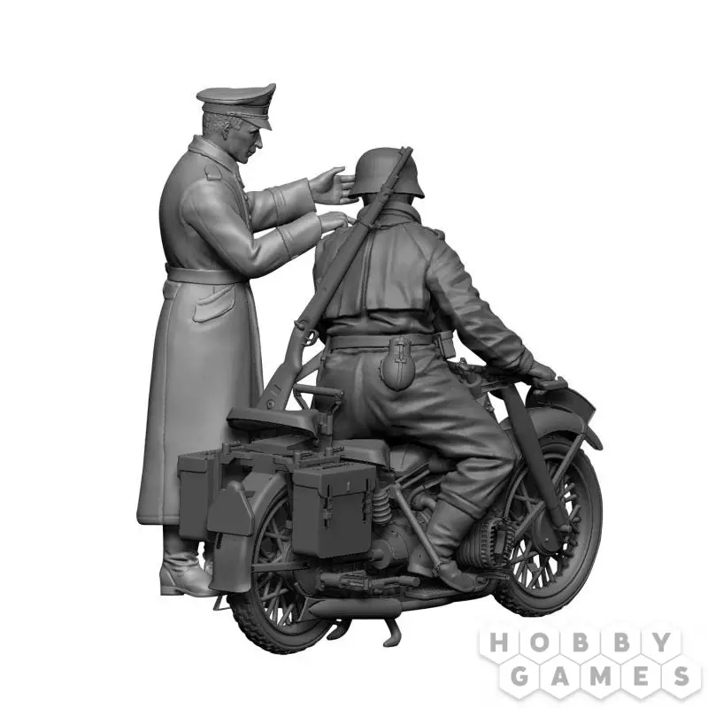 Этот набор включает две фигурки: водителя мотоцикла и офицера, а также высокодетализированную модель мотоцикла с коляской. Он станет отличным дополнением коллекции как для моделистов, так и для коллекционеров, воссоздающих атмосферу Второй мировой.