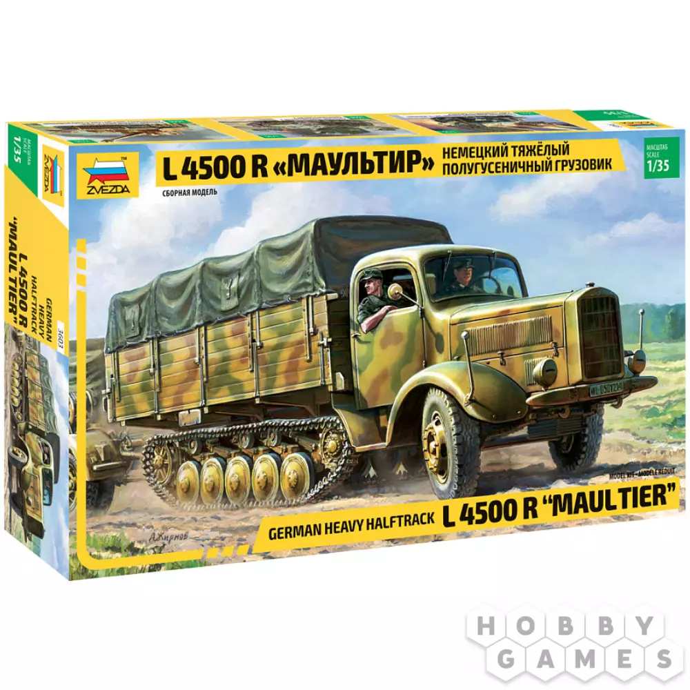 Сборная модель "Немецкий тяжёлый полугусеничный грузовик L 4500 R "Маультир" – это точная реплика одного из уникальных транспортных средств Вермахта, созданных в ответ на сложные условия Восточного фронта. В начале Второй мировой войны немецкие грузовики, включая Мерседес-Бенц L4500А, не справлялись с суровым бездорожьем России, что приводило к множеству поломок и потерь.