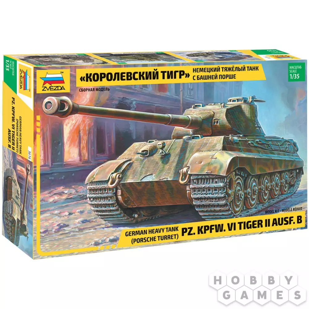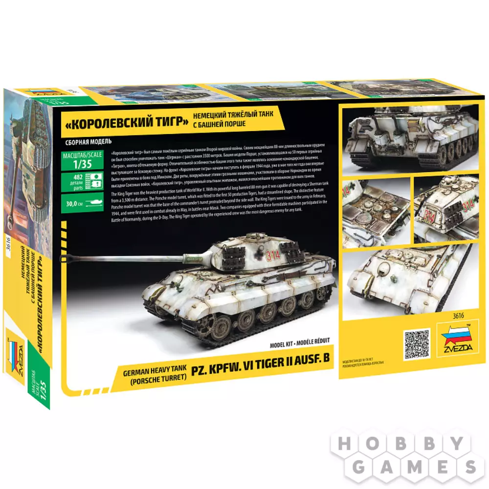 Немецкий тяжёлый танк "Королевский тигр" с башней "Порше" является детализированной моделью одной из самых грозных машин, применявшихся во Второй мировой войне. Вступивший в строй в 1944 году, танк стал мощнейшим оружием на поле боя. Оснащённый пушкой калибром 88 миллиметров, он мог уничтожать технику противника на удалении до 3,5 километров.