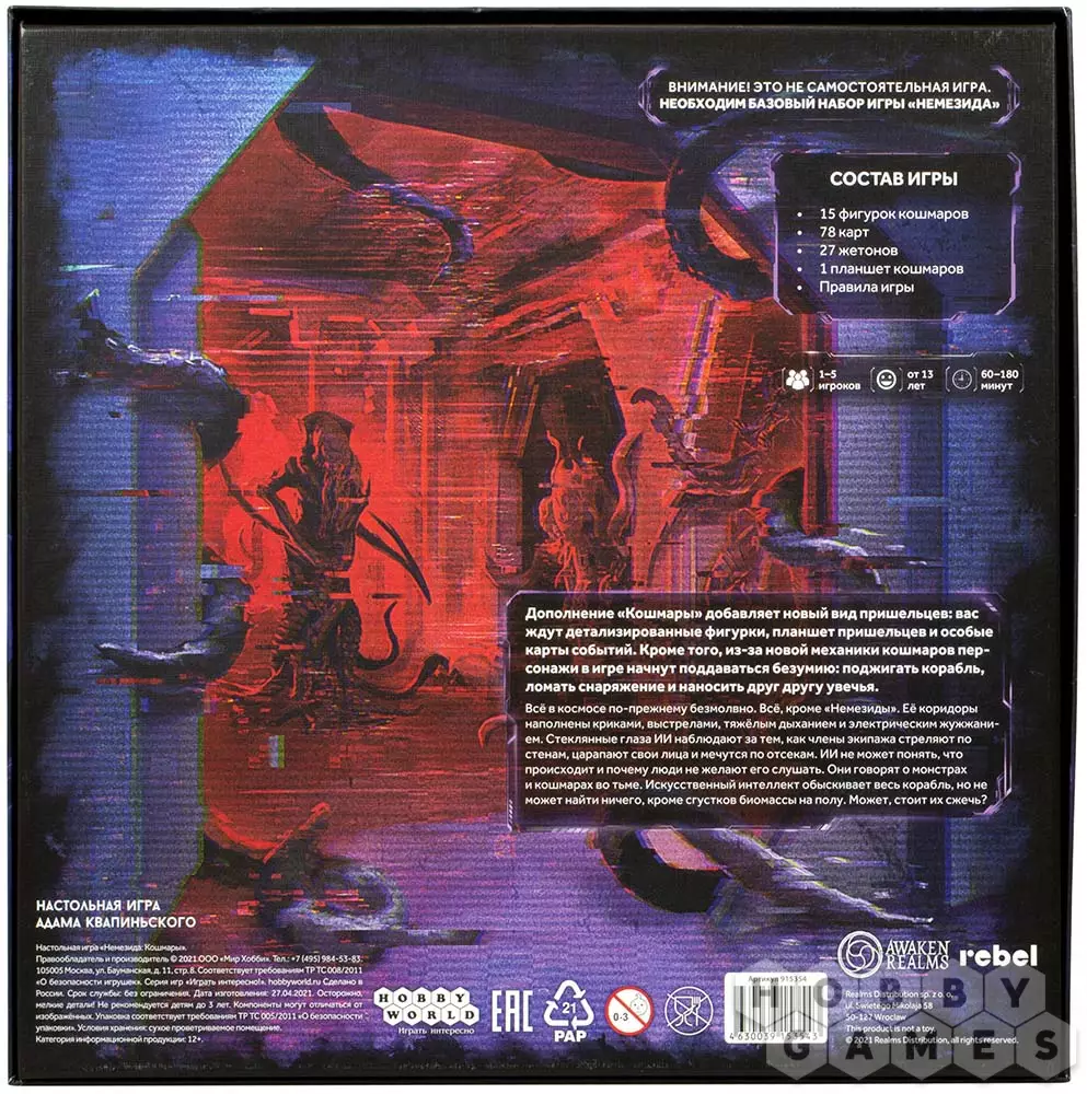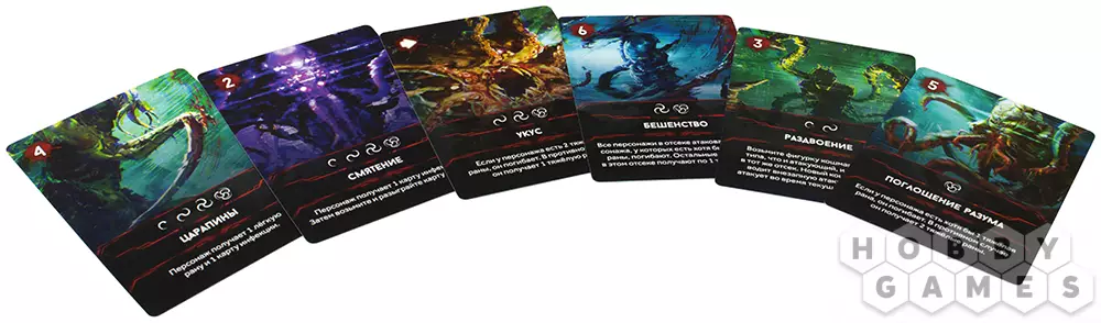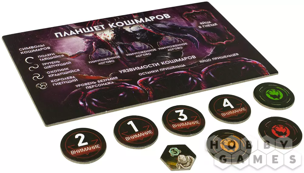 Akcium10.02.2022 23:15Второй русифицированное дополнение к базе. Все также прослеживается высокий уровень компонентов и внимание к деталям миниатюр. В плане геймплея дополнение приносит достаточно большие изменения. Если база это больше ощущение опасности неподалеку и бегства при виде сильного врага, карноморфы это про уничтожение кусачей заразы, то кошмары дают вам почувствовать вкус неопределенности. В любой момент все ваши планы могут пойти под откос, а ситуация из хорошей станет ужасающей, так как причуды больного разума никогда нельзя предугадать.