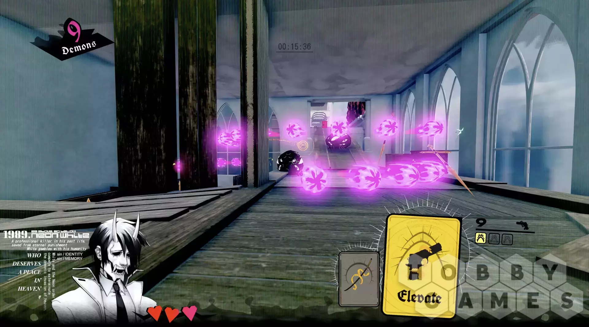 - Ты играешь за Неона Уайта – наемного убийцу, которого перенесли из ада, чтобы посоперничать с другими охотниками на за шанс на искупление.